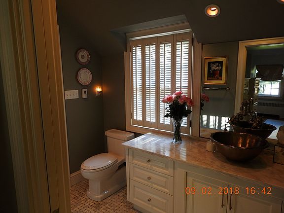 This spectacular home has been meticulously maintained & beautifully transformed by Architect Dan Ensminger & Robert Rentz Interiors into an enchanting 2 story brick Colonial w/cottage appointments enhanced by weathered stone, bluestone, copper and slate roofs. The formal rooms have exquisite craftsmanship & detail w/random width pegged oak floors. Cozy den boasts stained cypress paneling, handsome built-in bkcases and corner FP. State-of-the-art Chefs Kitchen w/travertine tumbled stone flooring, Wolf, Sub-Zero and Miele appliances. Garden Room (10' ceiling) w/5 Sets of Double French Doors, tongue & groove painted ceiling & oak fl that overlooks the boxwood garden & 2 brick patios ( one of which connects the covered back porch w/copper roof to the kitchen). Also featured are 2 Master BRS (First Floor Option) & one additional bedroom, 2 1/2 baths w/marble & stone. Custom Laundry Room has Travertine floor, old beams, Marc Cohen Custom painted cabinets, Shaw Fireclay Farmhouse Sink and Rohl polished nickel faucets and handles. Additional features are B-Dry basement (2018), Generac 40 KW gas generator, Rinnai water heater, irrigation, security system and air filtration system.