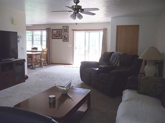 All you need is right here with this roomy ranch home, large open living room, dining room and kitchen, spacious bedrooms, master bedroom has private bath and walk in closet, main floor laundry, new roof, new water heater, new carpeting,new vinyl and vanity in main bath, 2 new toilets, new sliding glass doors lead to new deck with hot tub, that overlooks manicured 5 acres of ground that includes a decent sized pond. Home has outdoor wood burning furnace as well as gas forced air, large 2 car garage all in New Prairie School district!