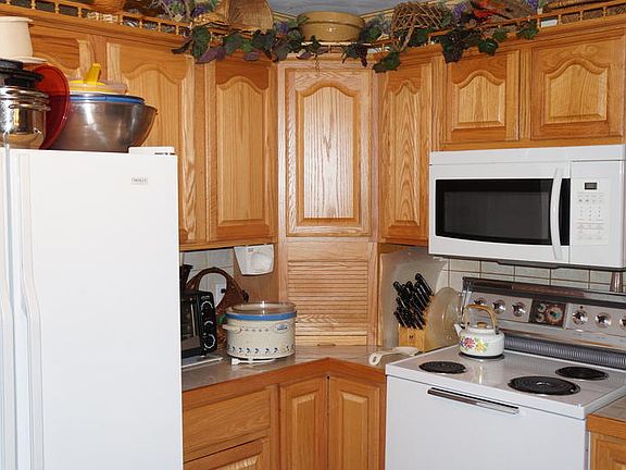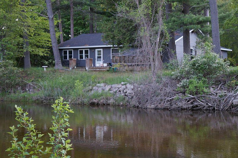 Some properties offer waterfront with some seclusion, this property offers both. This home has four bedrooms, 2.5 baths, laundry room, dining room, oak cabinets with cream color appliances, eat in bar seating three stools, a living room(21x15) carpeted with a fireplace, with ample room for large pieces of furniture.The sun room area or family room(9 x 21), gives the home additional living space with large windows, and an option for a office area. The large deck with built-in bench seat has the peaceful and seclusion feel that encapture's you while enjoying the waterfront view. Wonderful way to spend your days with morning coffee, or with family grilling anytime of the year. A great way to start your first home with maintenance free siding, newer roof, privacy, close to town, waterfront, affordable taxes, move in ready, with natural gas heating, a large master bedroom(13x12) with bath(6x5), all this with a attached garage(484 sqft). For a bonus feature, a bedroom(10x10) is riverside, and has a seperate entrance to a deck and privacy fence. At one time was hooked up for a hot tub room. This home is broker owned.