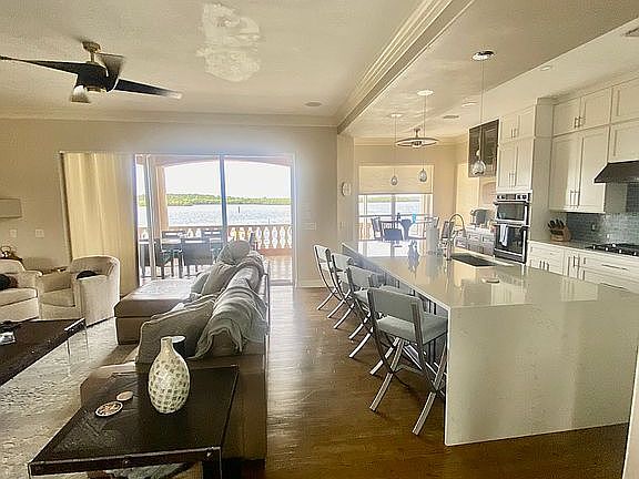 Breathtaking waterfront views of the Gulf of Mexico. This 4 bedroom home is custom built and features and open kitchen with high bar and nook, granite counter tops and wood cabinets. The large great room has a gas fireplace. There are covered balconies on three levels overlooking the water and your own dock with boat lift. You will enjoy the 40 foot pool and spa on hot summer days. Guard Gate as well as private gate. Watch spectacular sunsets as the dolphin play in front of your home.