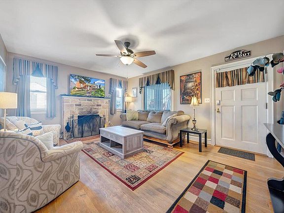 Great house on a corner lot with covered front porch. Inside you'll find a living room with wood fireplace, further towards the back connected to the living room is your dining room. Offering a kitchen that makes great use of the space with access to the screened in deck and fenced yard with privacy fence and rear basement entry. Inside there is a large unfinished basement and attic which is ready for drywall and could easily become a 3rd bedroom or den, electrical outlets already installed. All replacement windows, wood floors, newer appliances and a large detached 2 car garage. This is a great find!