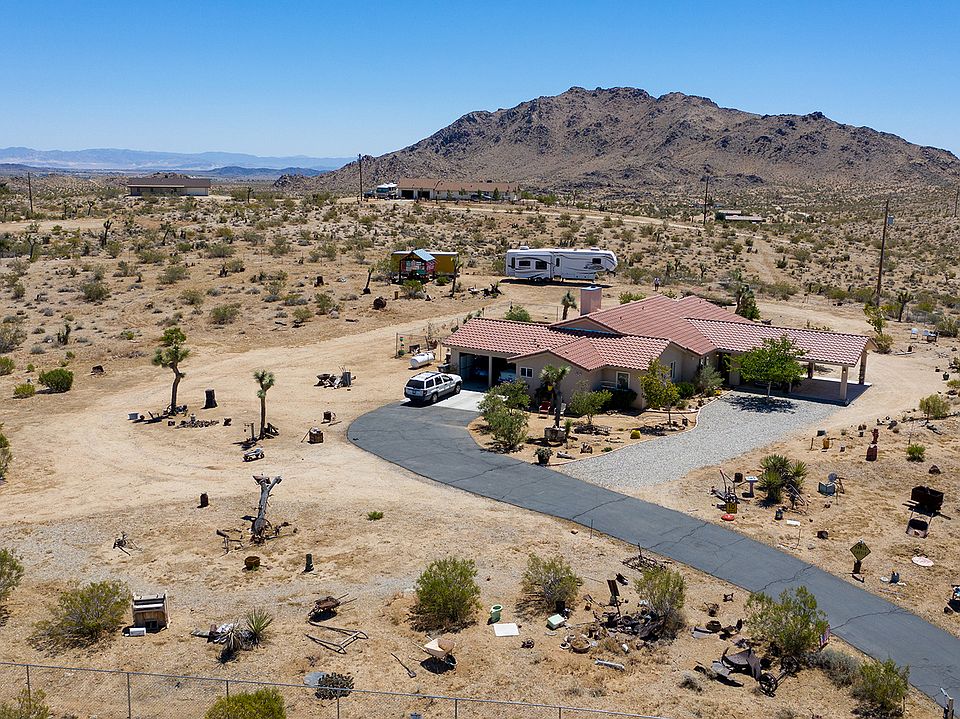 GORGEOUS hill side home in Yucca Mesa area of Yucca Valley with 360 degree views including San Jacinto, San Gorgonio and JT Natl Park! This 2.28 acres is completely fenced with electric gate. It's stunning with it's tile roof, & open style. Inside is all beautiful new ceramic tile, high ceilings and open floor plan. It is 2200 SF of gorgeous, including amazing granite in the kitchen and bathrooms, living room fireplace and windows everywhere for the views. The front of the home features a large newer steel framed portico that can be used as patio space or as extra parking. Walking in the front door is a large open great room area and a split bedroom plan, large kitchen with upgraded appliances, cabinets and counters. Great dining area overlooking the beautiful back yard area. Bathrooms are stunning and the master has dual sinks, and separate shower and bath. Back patio for amazing sunrises and sunsets! Be in the park in 10 minutes too GORGEOUS Remodeled home!