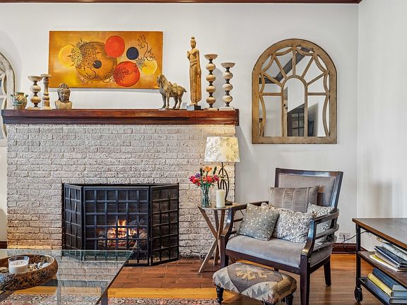Welcome to Historic Sheridan Park, a classic Chicago neighborhood in the heart of vibrant, artsy, Uptown. This classic 3 bed, 2.1 bath condo is located in a charming 6 flat brick building on a tree-lined street. This home exudes warmth and welcoming vibes from the moment you open the door and is sure to delight vintage buyers. A spacious living room and adjoining sunroom is east facing and is perfect for plants, serene for yoga, a reading nook, or your artistic endeavors. The bedroom adjacent to the living room is currently used as a home office. The generous en-suite primary bedroom is large enough to easily accommodate a California King bed. It also has two large closets. The second bedroom is ideal as a guest room, nursery, or craft room. The kitchen opens to a huge dining room with a gorgeous vintage built-in hutch; perfect for entertaining! Hardwood floors, central heat/air and in unit laundry. New furnace, new washer dryer, hot water heater and refrigerator. Enormous storage unit in the basement (could be a wine cellar, use your imagination!) Large porch steps out to a common paver courtyard & dog run. Unit has a private garage with 1 spot. Car free? Walk to the redline, or enjoy any number of bus transit options to speed you to where you want to go! This home is a half mile walk to Montrose beach and a fantastic dog park.
