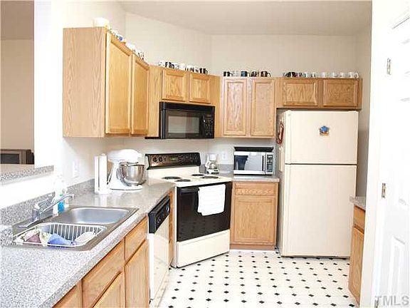 Charming townhome located in a great central lication. Minutes tio 540, Triangle Town Center, restaurants and shopping. Cozy fireplace in the family room, formal dining room with bay window and arched entry. Master bedroom offers walk in closet! Fenced patio area is great for entertaining. Option to build garage, see documents. Fridge, W/D convey!