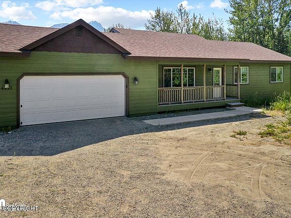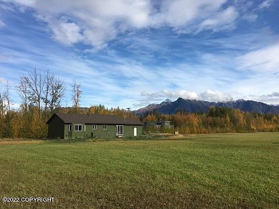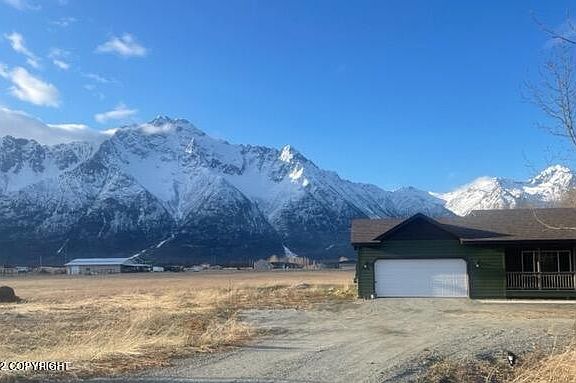 Newer home with gorgeous mountain views on 3 acres! Open layout great for entertaining. Kitchen features: stainless like appliances; laminate countertops; breakfast bar with ample seating; mt. view from kitchen sink & dining room (patio door). Enjoy the view from the Primary bedroom & bathroom. Located around the corner from trails (Butte), rivers and the reindeer farm. Scenic commute to JBER.