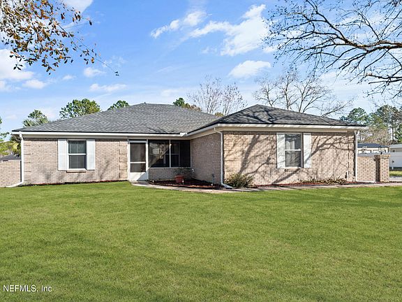 Solid, brick-veneer home with pond views features 4 bedrooms and 2 full baths in a split arrangement. This home is tucked away in a quaint, country-like subdivision with large lot sizes (rarely a turn-over) only minutes away from Jacksonville, Yulee, and Fernandina. Roof (2021), HVAC (2022), and Water Heater (2023), and new metal shed w/carport (30' wide and 25' deep) has concrete floor (2023).