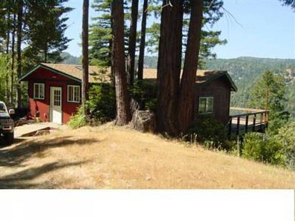 Rustic cabin sited on beautiful 40 acre parcel overlooking panoramic vista hillside and canyon views! Clusters of redwoods and open meadow surround the cabin setting. Appears to have about 2-3 acres of usable land with the balance in slope and timber. Living room has wood walls and ceiling, brick fireplace with insert.