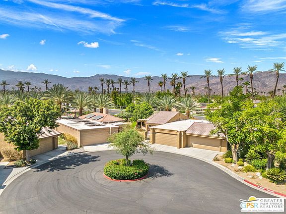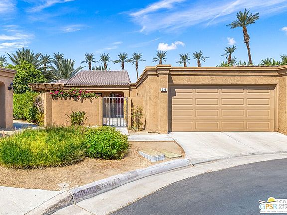 Wow! Check out this bright and inviting desert retreat in Hidden Palms, with mountain views, fabulous patios, and a private cul-de-sac setting. A large gated courtyard welcomes you inside, where living and dining areas enjoy great flow to patios and the outdoors. The kitchen is both stylish and functional with a breakfast area and unexpected views that add a delightful surprise. The ensuite primary features a glass-block tub/shower and an expansive walk-in closet with built-ins, along with direct access to the two-car garage. The guest bath is finished with a beautifully tiled shower, while the laundry is conveniently located along the central hall. Toward the back of the home, a sun-filled interior courtyard works its magic, connecting with a guest bedroom and bringing light and warmth inside. Guest bath and Guest Bedroom #3 are also along the main hall. Consistent tile flooring and a striking brick fireplace add character, while smart upgrades include remote-access electronic locks, updated window coverings, and water-saving fixtures. Outdoors, enjoy mature grapefruit and lemon trees with drip irrigation, creating a private backyard oasis. Hidden Palms offers a resort-like lifestyle with sparkling lakes, four pools, tennis and pickleball courts all just minutes from El Paseo's world-class shopping and dining. Take the Matterport Virtual Tour and see why this home captures the best of desert living.
