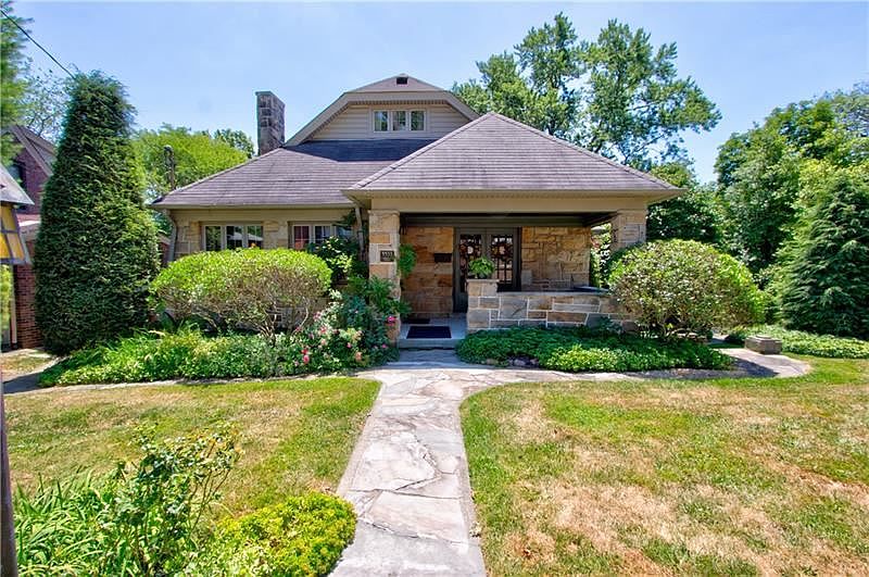 Stunning & spacious stone Bungalow on beautifully landscaped private large lot. Air conditioned! Updated new granite eat-in kitchen features stainless steel appliances. Gleaming hardwood floors. Tons of charm & character. Large living room features stone log burning fireplace. Gorgeous updated master bath features walk-in rainfall glass shower. 4th bedroom could be home office, den, or media room. Huge walk-in closet with window could be 5th bedroom. Bright skylight. French doors to covered front porch. Large terrace/patio & outdoor stone fireplace are great for entertaining. Updated 2nd full bath on main level. First floor master bedroom flex option. New windows. Oversized 2-car garage with high ceilings. Tall 8-foot garage doors, great for SUVs. Large flat concrete driveway, ideal for basketball court/hockey. Quiet street in prime location near South Hills Country Club. Home warranty & all appliances included. Plenty of space for a putting green, treehouse, trampoline