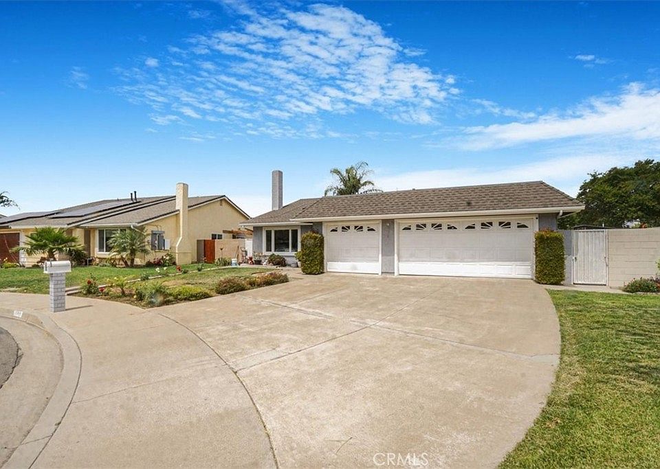 This turnkey 3-bedroom, 2-bathroom home sits on a desirable corner lot in a tranquil cul-de-sac, offering added privacy and curb appeal. Travertine stone floors provide timeless elegance, while solar power ensures energy efficiency and savings. The beautifully appointed kitchen features granite countertops and stainless steel appliances, blending style with functionality. A dry bar and dual beverage fridges add convenience, perfect for entertaining. The spacious living room, wired for surround sound, enhances entertainment possibilities. Step outside to a low-maintenance backyard with stylish pavers and a sparkling swimming pool, ideal for relaxation. A finished three-car garage provides exceptional space for vehicles, storage, or projects. Prime location, premium upgrades, and modern conveniences—this home is a must-see!