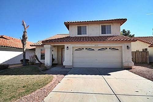 Beautiful 4 Bedroom, 2.5 bath home located in Ahwatukee. This home has 2080 S.F. with the living areas down and bedrooms up. There is a formal dining room and living room, family room, and eat-in kitchen. The kitchen includes white appliances with upgraded maple cabinets and granite counter tops. The rear yard is low maintenance and has a beautiful pebble-tech play pool with waterfall.