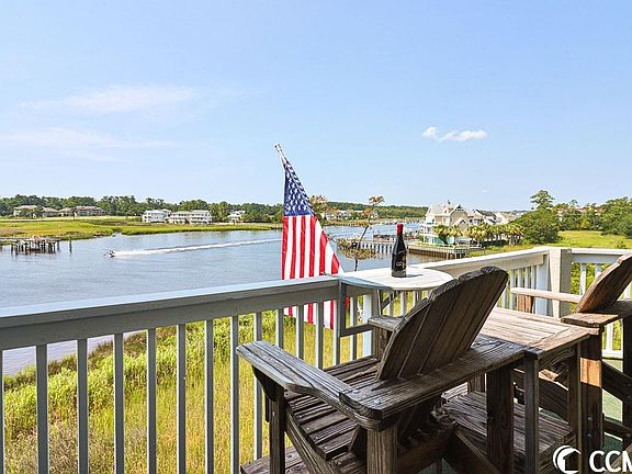 Welcome to the desirable Spinnaker Cove community at Eastport, nestled along the picturesque Intracoastal Waterway (ICW) in Little River. This stunning top floor move-in-ready 2-bedroom, 2-bathroom furnished condo with the uniqueness of having elevators, offers a truly idyllic waterfront living experience overlooking the ICW. If you enjoy watching the amazing sunsets, being entertained by the passing boats, and just relaxing, this is the home you must have! The bright and airy living room is filled with an abundance of natural light streaming through two sliding glass doors that lead out to the wrap-around porch. The newly renovated kitchen features high-end stainless steel appliances, a breakfast bar, custom cabinets, and counter height Quartz countertops providing ample storage with an added pantry. Whether you're whipping up a quick meal or preparing a feast, this kitchen has everything you need. The dining area is open to the kitchen and living space and has a bar including a built-in wine frig. The primary suite is a true retreat that has a sliding glass door out to the wrap-around porch with a beautiful water view of the ICW to start and end your day on a peaceful note. Also in the primary suite are his and her closets. The primary bathroom boasts a coastal and spacious walk-in tile shower, dual-sink vanity with Quartz countertops, and an added linen closet ensuring more storage space. The guest bathroom has two entry doors, one into the guest bedroom and another into the hallway. Convenience is key in this condo, as it has a laundry room and there’s also your own storage closet across the hall from the front door. Organization and efficiency are effortlessly achieved in this thoughtfully designed space. Other outstanding features include luxury vinyl flooring throughout and solid wood interior doors. Undoubtedly, this residence stands out with its expansive wrap-around porch accessible from both bedrooms and the main living area, with sliding glass doors and water views from every room. Moreover, Spinnaker Cove has a swimming pool, a refreshing escape from the summer heat. You'll also benefit from being just steps away from the prestigious Valley at Eastport Golf Club. Little River is the perfect location within minutes of SC and NC beaches, with multiple golf courses, restaurants, shopping, and attractions. Immerse yourself in the breathtaking panoramic views of the Intracoastal Waterway and don’t miss out on this extraordinary opportunity to own a waterfront haven. This condo will go fast so book your showing today!