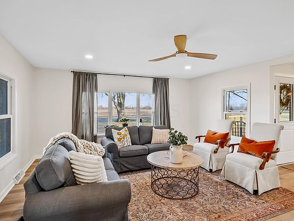 This turn-key, charming brick ranch home has been meticulously renovated and showcases the exquisite design and functional updates. Featuring 3 bedrooms and 1.5 baths, this home offers the ideal blend of comfort and style. Electrical system has been upgraded to 200amp, along with all new plumbing, new hot water heater, new basement windows, and MUCH more! The kitchen is a true gem, boasting quartz countertops, a center island, abundant cabinet storage, and SS appliances. The basement offers additional living space and endless possibilities. With over 2 acres, the backyard has GORGEOUS sunrise and sunset views - an oasis waiting to be enjoyed! Property includes a 40x60 Quonset building, and a 36x48 horse barn with hay loft. Don't miss the opportunity to make this house your new home!