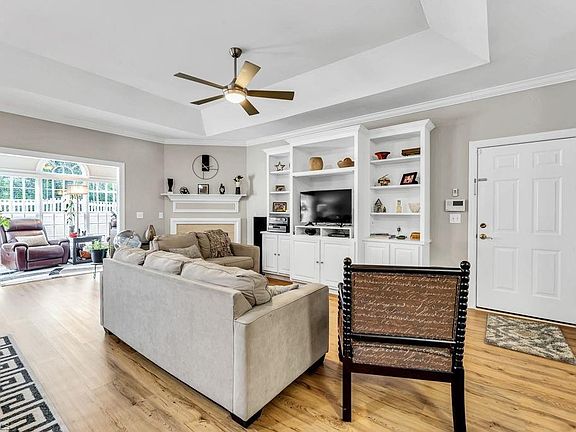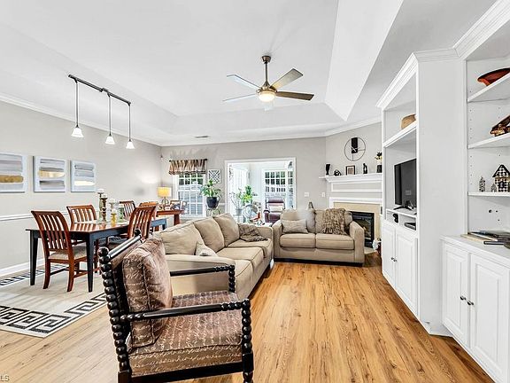Charming Townhouse with stunning curb appeal and exquisite features that are sure to impress! As you enter, you'll find yourself in a spacious living room with plenty of natural light and a cozy fireplace, perfect for those chilly nights. The tray ceilings add an extra touch of elegance to the room, making it a great place to relax and entertain. The large kitchen is a dream come true with its beautiful white cabinets, ample counter space, and a convenient breakfast bar that's perfect for quick meals. The built-in wine rack is a stylish and functional addition, allowing you to keep your favorite wines on hand for any occasion. The sunroom is a great place to unwind and soak up some natural light. The patio, complete with a charming pergola, is an ideal spot for outdoor entertaining. Don't miss out on the opportunity to make this your forever home!