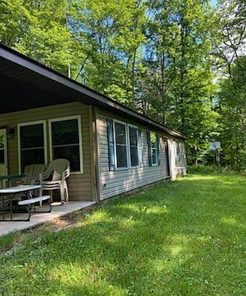 PRIVATE, SECLUDED, BORDERS STATE! What more could you ask for? Very comfortable 3 bedroom cottage thoughtfully arranged and well maintained. Surrounded by woods on 4 sides two sides of which are state land. Step out the door and you are ready to hunt or just relax and enjoy the stillness of this forest sanctuary. Majority of the furniture included ( he is taking most wall prints and personal items)as well as the hot spot and lawn mower.