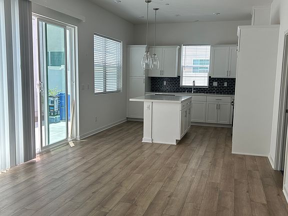 Detached home with all-in design upgraded finishes. White shaker style cabinets, quartz kitchen countertops with custom tile design full height backsplash, pendant lighting over kitchen island, stainless steel appliances, luxury vinyl plank flooring with upgraded carpet, washer and dryer Hood Ready to connect .
