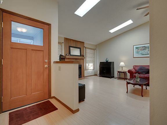 SW Portland home close to PCC, parks, schools & New Seasons! Floor plan opens into a vaulted living room. Skylights and sizable windows keep the space light & bright, while the fireplace radiates warmth throughout. Connected kitchen & dining area is ready to serve, equipped w/ eat-in bar top, SS appliances,access to deck & backyard. Master suite w/ walk-in closet & attached bath, plus two addl beds, full bath & laundry. Park-like yard!