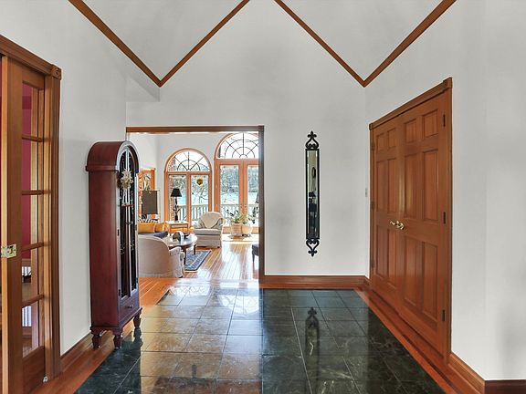 Stunning Lamb Lake property available just in time for Summer. This gorgeous home boasts a 1.6 acre lot w/ large front yard and 200ft+ of main-body shoreline. Low sloping backyard for easy access to water and the lakes private beach. This beautiful home has fabulous views the minute you open the front door w/ charming details throughout. Hardwood flooring on main level and new carpet in the bedrooms & finished basement. Large main level master w/ multiple closets, sitting area, office and deck access. Numerous areas to entertain w/ formal dining room, 2 decks, lower patio and screened in porch. Finished basement provides a full bath, 2 separate family rooms, sauna, bar and access to a new hot tub. 3 car garage and plenty of storage space.