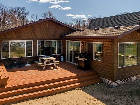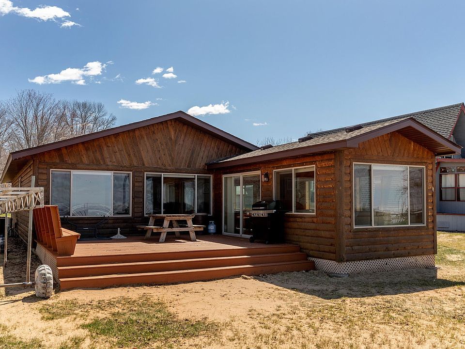 Welcome home to your new lake home! 81’ of pristine sandy beach on a large level west facing lot on Lake Mille Lacs. This fully gutted/remodeled home (2005) with new addition (the structure along the side) in 2008 –(roof, septic, windows, siding wiring) features large yard for outdoor entertaining, 3 bedrooms and 2 bath, 2 family rooms, separate seating for mealtime overflow, tongue & groove, a wall of windows to view the lake activities & west facing story book sunsets, family room that walks out to the large lakeside deck, shed and 2 car garage. This is in a calmer area of the lake so you will appreciate the entire lake shore living experience. Buy now and enjoy the entire summer! Fully furnished and dock with accepted offer.