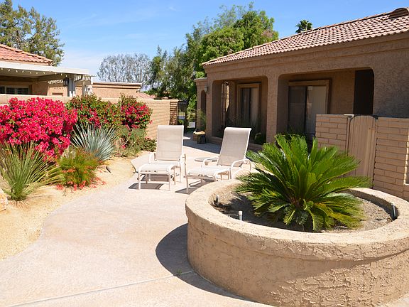 Welcome to the lovely gated community of Hidden Palms in heart of Palm Desert convenient for El Paseo shopping. Low density Planned Unit Development with 4 pools, 5 tennis courts, and community lake, LOW HOA's. (including high speed cable & internet, garbage, landscaping) Detached unit on a quiet interior Cul De Sac with Mountain Views. Kitchen updated with new stainless steel appliances. Master suite with walk-in closet. Featuring 1 guest bedroom with private atrium. Large courtyard with wrap-around patio facing south and west for entertaining family and friends.