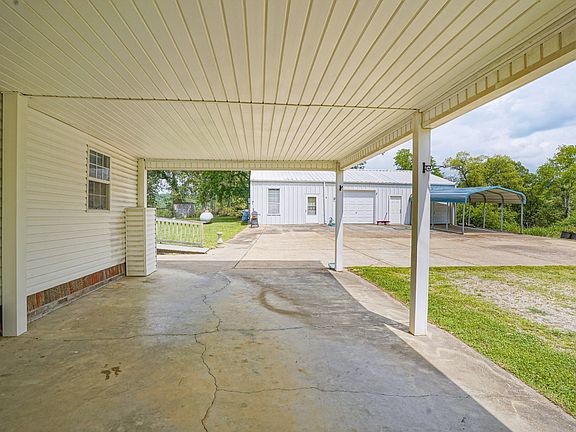 Beautiful country home on 4.4 acres with a covered Front Porch, covered back Patio and covered Carport. Features a 30x50 detached garage with concrete parking. Brand new roof. Large kitchen with LOTS of cabinet space. Beautiful floor plan for this home with fireplace in Sunroom. Detached garage has space for entertainment with a bathroom. Home includes 2 additional carports and a storage shed. Property is fenced with entrance gate. Area fenced and ready for animals if you wish.
