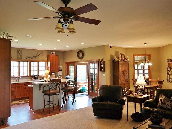 Stunning custom built ranch w/walk-out basement located on 6+ acres. 6'' exterior walls, Anderson windows throughout, custom maple hardwood floors and woodwork, poured basement walls. Kitchen has rustic cherry cabinets, Jenn Aire stainless appliances, wine cooler, and 10' Anderson slider leads to attached screened in porch. WBFP with gas log inserts in great room. Master BR suite has a walk-in closet and 12' slider leading to the patio deck. Large master bath with Jacuzzi tub. 2 bedrooms have Jack and Jill bath with additional washer and dryer. 1st floor utility room with stainless washer and dryer. 30 x 30 pole barn with a pellet stove. Concrete and gravel driveway.