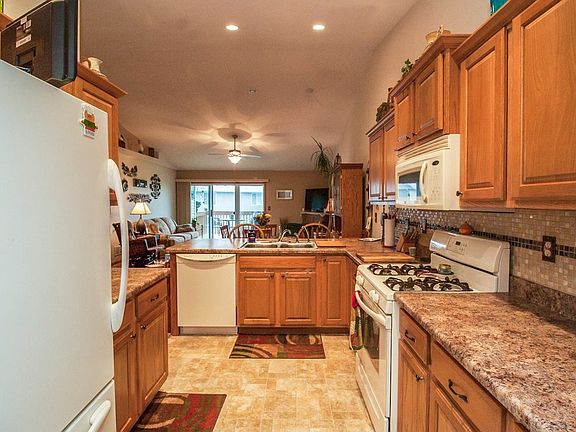 Beautiful newer ranch condo located on a quiet cul-de-sac that is Energy Star compliant. The main level features an open kitchen with upgraded tile backsplash, above cabinetry lighting, a large pantry, and all appliances are included. The floor plan is open with a breakfast bar, room for a dining table, and living room with vaulted ceilings and sliders leading to the deck. The master bedroom features a walk-in closet and master bathroom. There is an additional bedroom and bathroom on the main level. The walk-out lower level features another conforming bedroom, half bathroom which can easily be converted into a full bathroom, a rec room with negotiable furnishings (pool table, bar, 60" TV, and furniture set), work shop, and plenty of storage space. The lower level also features sliders to the patio to enjoy the outdoors. There is an attached two car garage for added convenience and storage.