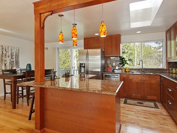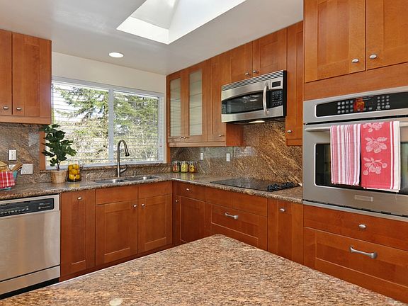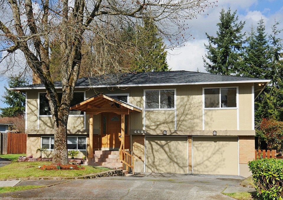Nicely remodeled home in a quiet neighborhood. Cul-de-sac. Close to Coal Creek parkway to Bellevue and 405. Move in condition. New roof and new elegant entrance. New carpets, marble counter top, SS refrigerator, new hot water tank, etc. Bright, with skylight. Open kitchen. island Station. Hardwood floor upstair. Thermal pane window. Huge deck off kitchen. 2 fireplaces. Sliding glass doors daylight downstair. Fully fenced oversized backyard with privacy. Master bedroom with bath.