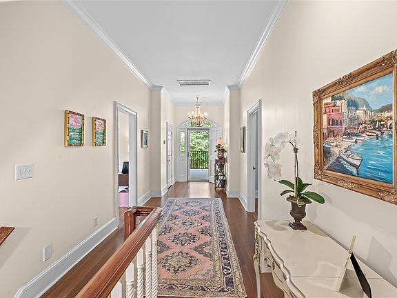 Discover the epitome of Southern elegance at 4434 Richmond Hill Drive in the historic, gated community of Wachesaw Plantation. Situated on nearly one acre, this all-brick estate boasts one of the highest elevations in Georgetown County, offering approximately 7,100 heated square feet of luxurious living space. The main house spans 5,600 heated square feet and features 5 bedrooms and 5.5 bathrooms. Enjoy views of the 17th and 18th holes of the Tom Fazio-designed golf course, with winter views of the Intracoastal Waterway. The backyard oasis is perfect for relaxation and entertainment, complete with a heated saltwater pool and hot tub, outdoor fireplace, grilling area, and double back porches. The ground level includes three oversized bedrooms, each with en-suite bathrooms, an inviting living area with a fireplace, a small office, and a laundry/drop zone area adjacent to the expansive 1,500-square-foot garage. The main level hosts the master suite and a large office on one side, and a chef's kitchen, keeping room, formal living room, and dining room on the other. A versatile bonus room on the third level offers ample space for a workout area, playroom, or additional storage. The 1,500-square-foot room over the garage, accessible via a breezeway or stairs from the pool area, features sprung flooring, a kitchenette, a full bathroom, and high ceilings. Embrace privacy, charm, and true Southern living in this exceptional estate home in Wachesaw Plantation.