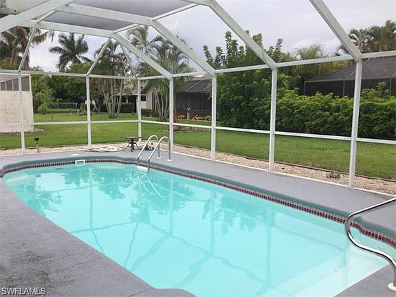 Great location! View of the Caloosahatchee River from the comfort of your living room. Enjoy this nicely maintained property with a split 3 bedroom, 2 bath pool home. This home features carpet and tile throughout, living and dining room, split bedrooms, and an enclosed sun room on the lanai overlooking the pool. Relax in the enclosed lanai, enjoy the warmth in the covered lanai, or sit next to the pool and bask in the beautiful Florida sunshine. Conveniently located to downtown Cape Coral, outlet and mall shopping nearby, and a variety of entertainment appealing to everyone's taste. Short distance to the airport, beaches, and I-75.