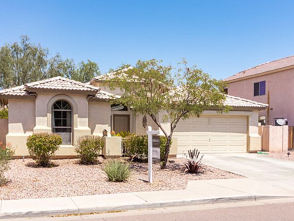 This home is sure to be the envy of all your family and friends. From the second you walk into the grand foyer you will notice the huge vaulted ceiling that leads into a very large great room and kitchen. The home's open floor plan is perfect for entertaining and you will feel right at home, whether you are hosting a large holiday family meal or enjoying a quite movie night. The 3 large bedrooms, 2 full baths, and a spacious yard provides plenty of opportunities for family and guests to have their own space. There are countless upgrades throughout including stained concrete floors, upgraded kitchen featuring tile backsplash, oak cabinets, stainless steel appliances and so much more. You will see why the builder Richmond American Homes used this home as one if its models.