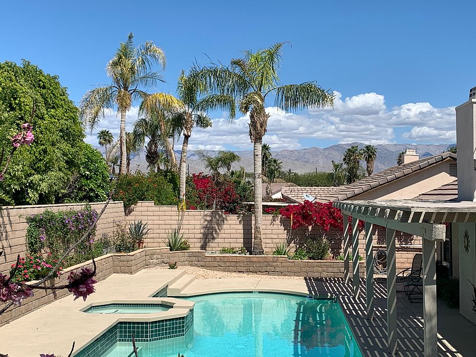 Step outside to enjoy your own private oasis with a pool and spa perfect for cooling off during the day or unwinding in the evening. You can also enjoy the pool being heated for only $80 per day. The home is located in a quiet residential neighborhood, providing a serene atmosphere for your stay. You'll have access to the entire house, including the full kitchen, living room, and outdoor spaces. Whether you're here for a weekend or an extended stay, you'll find all the comforts of home.