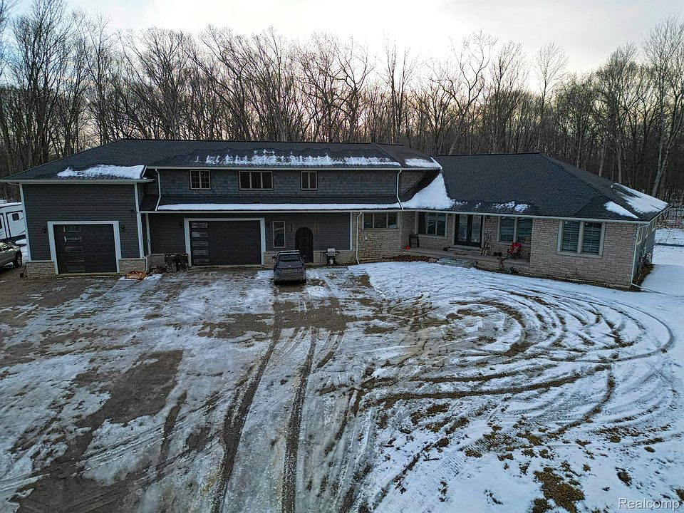 Must see to appreciate no expense spared. Maintenance free 5,564 square foot home with 5 bedrooms, 3.5 baths and is crafted to perfection. A true mother-in-law's quarters with a private entrance and basement. Anderson windows with custom blinds throughout and door walls, 1st floor laundry, great room with spectacular fireplace and unbelievable views, Chief’s gourmet kitchen with island, two refrigerators, custom cabinets, granite countertops and a walk-out basement setting on almost 10 Acres. 2 high end tankless water tanks, 2 high end furnaces, 2 central a/c units. Way too many extras to list. If you ever thought about upgraded amenities, this home has it! This home also features a 120 X 60-foot pole barn with 3 bays, a man cave, a partial kitchen, a bar and the 2nd floor loft has 4 rooms. Truly a Mechanics dream. Owner occupied so all showings are by appointment only! There is also an extra 1.62 acres available, see MLS #20250012262. On a scale of 1-10, this is a 15! Take a peek, you’re going to love it!!