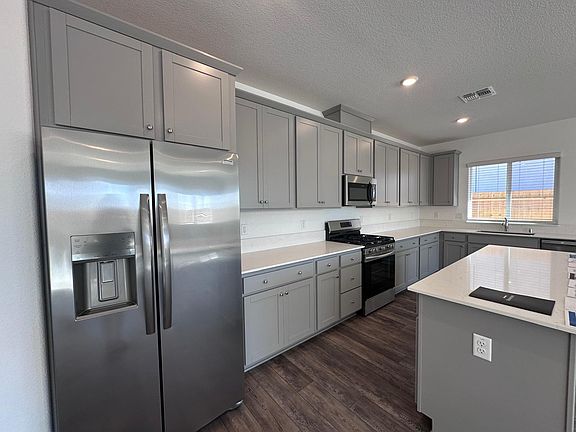 Gourmet Kitchen: Equipped with top-of-the-line stainless steel appliances stove, dishwasher, microwave, and refrigerator, and luxurious quartz countertops.