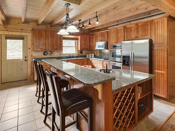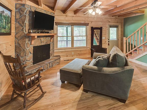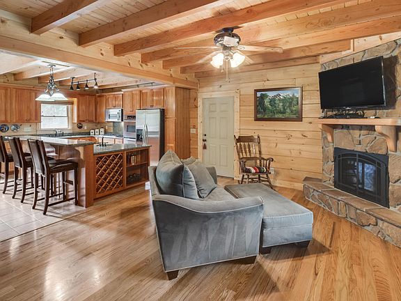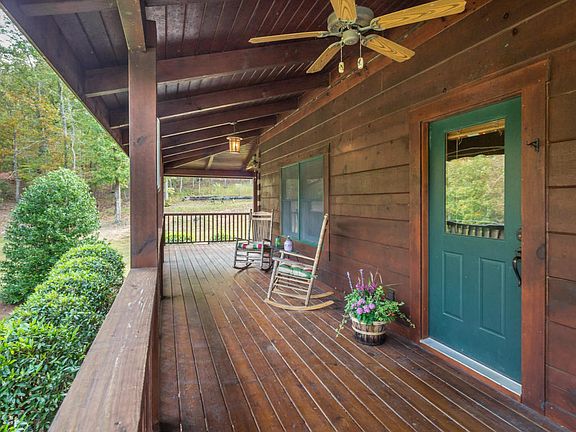 You know you want this! Completely private acreage combines with updated home for the perfect spot for your family! Not your typical log home - updates inside include open kitchen with solid surface counter tops, double oven, gas cooktop and storage galore. Great room (with fireplace) opens to all spaces. Master suite has all the upgrades (including tile shower) and vaulted upstairs bedrooms are really mini master suites. Downstairs check out the den/playroom (another fireplace) - it's so light and bright! Built ins make the office the best place to work! The rocking chair wrap around porch takes in the views of the backyard play area, above ground pool and decking and the free standing additional 2 car garage.