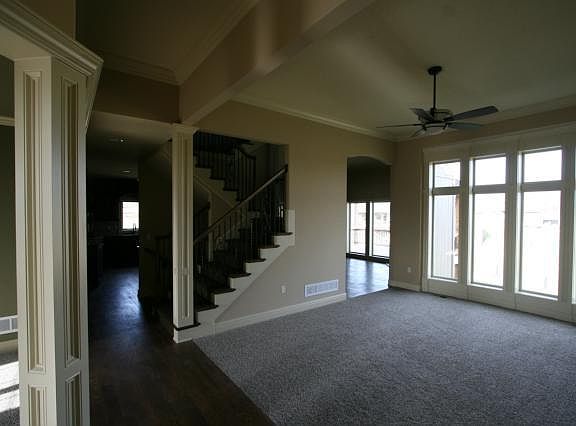 Outstanding Hearth room! Kitchen includes huge walk-in pantry, large center island with Granite Countertops, computer office, corner fireplace and custom cabinetry. Terrific 1st floor master suite with gorgeous bath! Covered deck and walk-out basement.