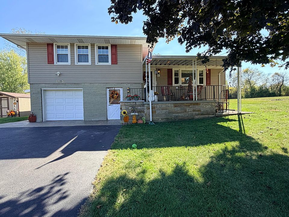 Welcome to 4435 State Route 274 West—a serene country property set on two parcels totaling 4.365 acres. From the moment you arrive, you'll appreciate the quiet setting surrounded by nature, with no neighbors in sight and beautiful views from the front porch, back deck, and pond. The home features a completely renovated kitchen with granite countertops, stainless steel appliances, under-cabinet lighting, tile backsplash, and new flooring. The spacious living room is filled with natural light and includes a wood stove that adds warmth and character. Downstairs, the finished lower level includes a built-in bar area and plenty of space for hobbies, entertaining, or storage. Outside, you'll find a paved U-shaped driveway, a 12x16 storage shed, and a 24x24 metal outbuilding with a concrete floor—perfect for tools, projects, or lawn equipment. The pond is stocked with fish, equipped with an aerator, and even includes a paddle boat. Trails have been cut through the wooded portion of the property, offering a great place to walk or explore. The home is serviced by a private well and public sewer. This property offers a peaceful setting ideal for anyone who enjoys the outdoors, privacy, and room to spread out—all within easy access to SR 33.