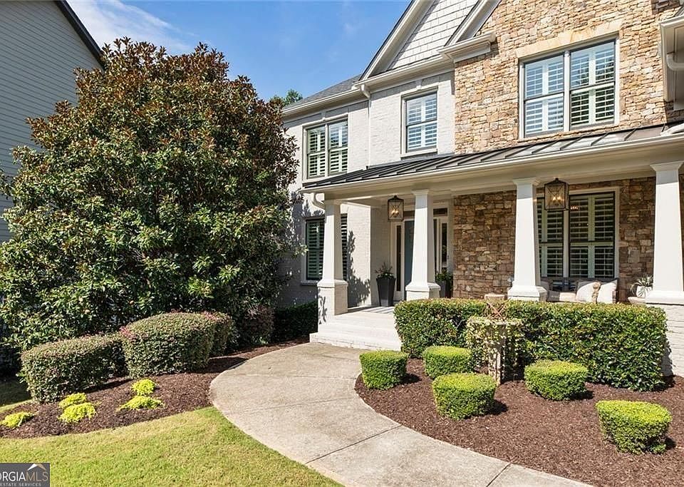 Freshly painted with new carpet, this MOVE-IN READY HOME is set within SOUGHT-AFTER WESTBROOK on a cul-de-sac lot in a park-like setting with a shared fire pit. Home includes built in speakers and SONOS sound system with room level volume controls in living room, kitchen, primary bed, primary bath and outside on the deck. The main level centers around a spacious living room with a stone fireplace, custom built-ins, coffered and beamed ceilings, and detailed trim. A private office, full guest suite with bath, and an inviting dining room with elegant light fixtures and trim details provide versatile spaces for work and gatherings. The kitchen offers stone countertops, a large island with storage, a walk-in pantry, and stylish cabinetry, while a mudroom off the kitchen adds convenience. Hardwood floors flow throughout the main level, connecting the interiors to a serene backyard framed by mature trees-perfect for entertaining or unwinding outdoors. Upstairs, the oversized primary suite includes a soaking tub, frameless glass shower, marble finishes, updated lighting and cabinet hardware as well as a large walk-in closet. Four additional bedrooms-two with private baths-are generously sized with walk-in closets. A spacious laundry room with folding counter and storage completes the upper level. The unfinished daylight terrace level (1698 sq ft) provides endless potential for future living space, including a guest suite, recreation room, or full bath. WESTBROOK is surrounded by mature hardwoods with tree-lined streets with sidewalks, this home blends warmth, functionality, and timeless design. The home is walkable, via a nature trail, to the amenities. Residents can enjoy swim, tennis, pickleball, basketball, and a vibrant community atmosphere, all minutes from Vickery, The Collection, Cumming City Center and the Greenway as well as the award-winning Forsyth County schools, one of Georgia's top-rated districts. This home is a rare opportunity to own in one of the area's premier neighborhoods, offering a combination of location, amenities, and timeless design.
