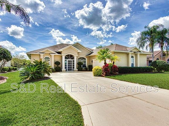 Check out this amazing waterfront home in the gated Fairway Oaks community. This stunning home offers 3 bedrooms 2 baths, a formal dining room, a spacious open kitchen with a breakfast bar, and a step-in pantry. Split plan, vaulted ceilings, large family room with stunning views of the lake, large master with ensuite master bath that offers dual sink vanity step-in shower with 2 shower heads as well as his and hers walk-in closets. The home boasts an oversized 3-car garage. Screen lanai. Lawn care and internet are included by the homeowners association.