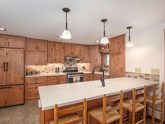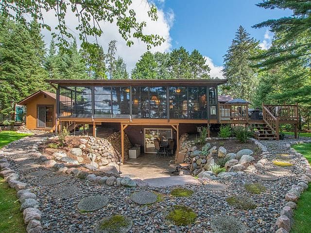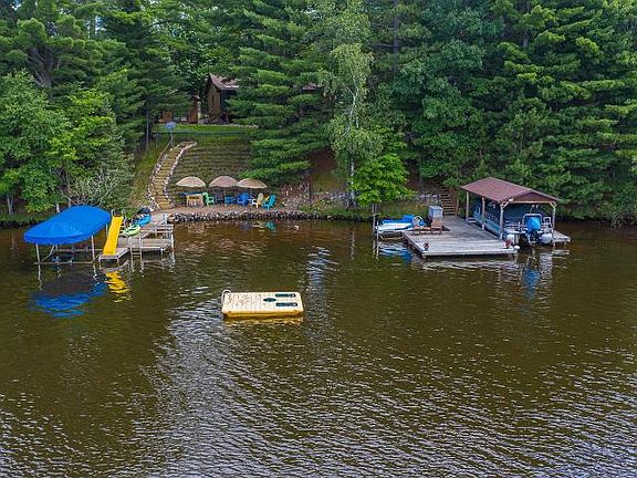 NEW HOUSE ROOF FALL OF 2020! Beautifully updated 3-BR, 3-BA home set on 104' of southern exposure sand frontage on the desirable Eagle River/3-Lakes Chain of 28 Lakes! Lakeside "Leisure Room With-A-View" features a gas stove & Hunter Douglas blinds & offers access to your spacious wrap-around deck. Custom kitchen w/knotty Alder cabinets w/solid surface tops, high-end appliances & cabinet pantry. Mn level master- BR & laundry, warm knotty pine interior. LL walk-out has a wet bar w/pub area, a spacious BA, an add'l laundry & a lovely FR w/a stone, gas FP. Outside you'll find extensive landscaping w/hidden firepit, an underground sprinkler system, a sauna building, a garden shed & 2 garages, one heated 2-car & a 32' x 20.' At the water you will appreciate the covered boat slip w/large permanent pier, as well as the big water views & beautiful sand beach. Close to all the conveniences of town, yet w/all the joys of Northern WI lakeside living, this one is a dialed-in & ready for you!
