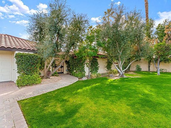 Completely Remodeled Flagship Property in Los Lagos, Indian Wells. This fully remodeled home in the prestigious Los Lagos community is a masterpiece of modern living. Thoughtfully updated with new appliances, custom kitchen cabinets, flooring, paint, updated bathrooms, and sleek fixtures, this home offers the ultimate in comfort and style. The main house features approximately 2,448 square feet of open living space with vaulted wood-beamed ceilings and a stunning upgraded fireplace with a custom concrete finish. Enjoy serene views of a tranquil lake and waterfall from the kitchen, living room, den, and primary bedroom. A freestanding casita with raised wood-beamed ceilings, new floors, and a fully remodeled bathroom provides privacy and elegance for guests. The converted golf cart garage adds a bonus room that can function as an office, gym, or art studio. The outdoor space is equally impressive, with interlocking brick pavers creating a seamless patio and driveway, perfect for entertaining or quiet relaxation. Located in a prime, quiet spot within the gated Los Lagos community, this property combines luxury and tranquility. With just 89 homes on 35 acres of lush landscaping and waterways, Los Lagos offers unparalleled beauty and privacy. Residents enjoy exclusive Indian Wells benefits, including discounts to BNP Paribas Tennis and more. Schedule your private tour today to experience this exceptional property.