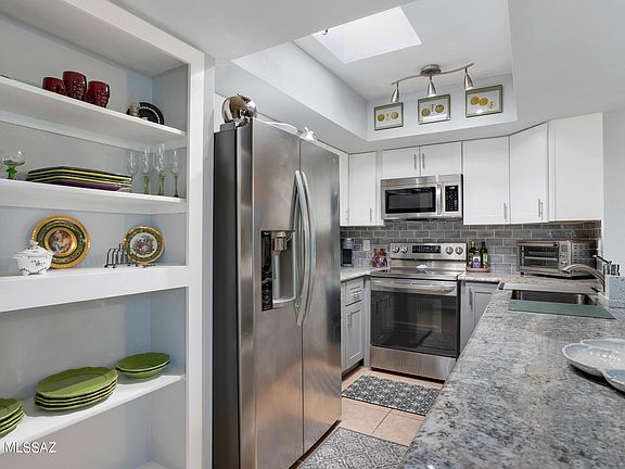 Incredible & Newly * REMODELED* townhome located in the highly sought after Lazy Creek community in the heart of Tucson.This 2BR/2BA 1128 SF gem is light and bright and offers an abundance of new updates! Newly remodeled kitchen has new cabinets, granite counters, LG appliances, new lighting and sit up bar.Enjoy the cozy fireplace in the great room and casual dining area. Both bathrooms have new cabinets, granite counters, and much more! Other updates include new windows, new sliders in primary suite & off kitchen, hot water heater, window treatments and Maytag washer/ dryer! You will love the spacious and Zen vibe as you enter the backyard.There is plenty of space to create your dream backyard or add a jacuzzi! Furniture is available on a separate bill of sale.This one is extra special!