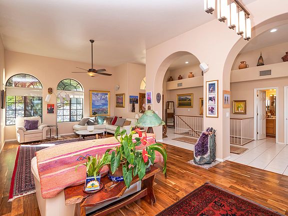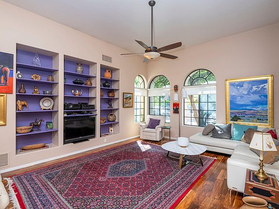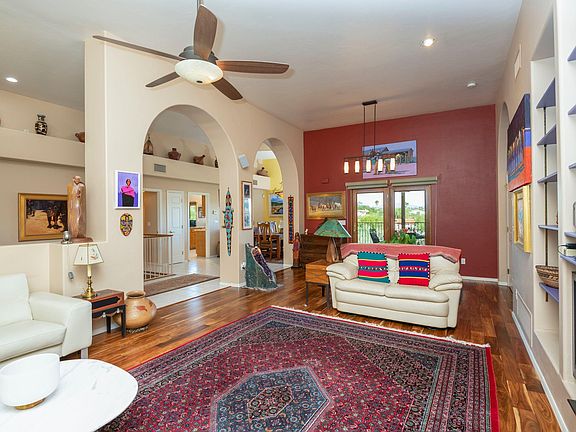 * Absolutely immaculate home in Gated Rio Robles Estates! This stunning remodel has vaulted ceilings, wood floors, ceramic tile and a lovely updated kitchen. Renewal Anderson custom made French Doors on top level, downstairs custom French Doors, ceramic tile, & more. This home features vaulted ceilings, tons of storage space, shelves and nooks, full length patios. A theater room, den, office, and wet bar. Don't miss out on this 3 bedroom/3 bath home with an extra room which could be a home theater, exercise room or den. Enjoy the outdoors on the balcony or walk to the River Walk through a private gate. Enjoy incredible privacy and magnificent views of the Catalinas, Rincons and sparkling city lights.