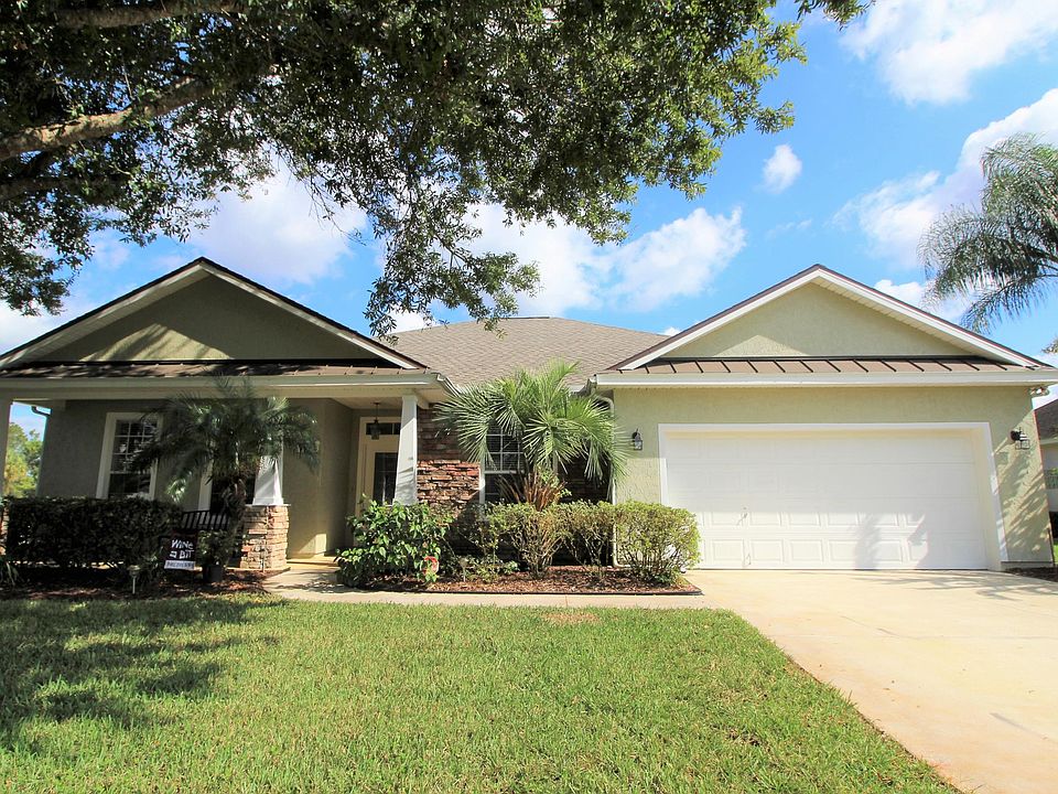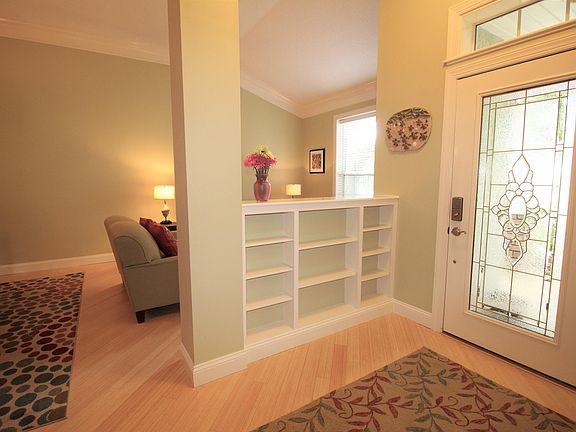 Pristine Home in Cypress Lakes! This 4 bedroom, 2 bath home has been meticulously maintained and upgraded. As you enter you'll notice the attention to detail with handsome bamboo flooring, built-in shelving, volume ceilings and the 2-step crown molding that is throughout. The formal living room and dining room are open and inviting and flows nicely into the kitchen and family room, perfect for entertaining. The family room is bright and welcoming with neutral colors, vaulted ceilings, gas fireplace and French doors leading to the screened lanai. Nicely equipped, the kitchen boasts 42'' maple cabinets with crown, granite counters, tiled backsplash, snack bar and upgraded appliances. Adjacent to the kitchen, there is also a stylish built-in wine bar with chiller and storage