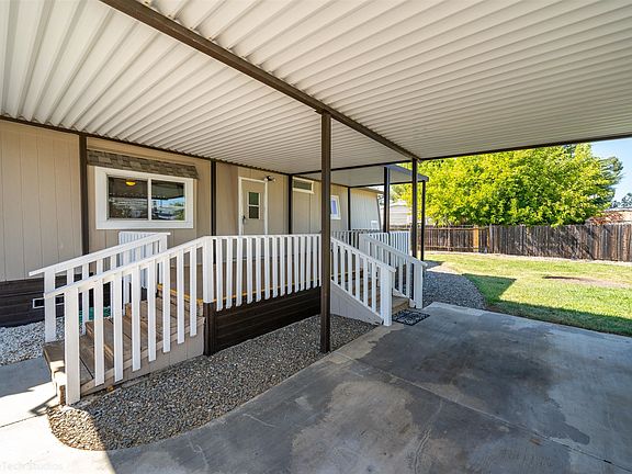 Nicely updated manufactured home with brand new HVAC (2.5-ton split system), vinyl flooring throughout, dual pane windows, on a foundation and a nice size lot with a large covered carport area with a storage shed. No park fees, you own the land!!