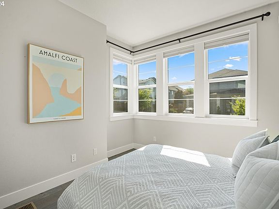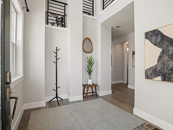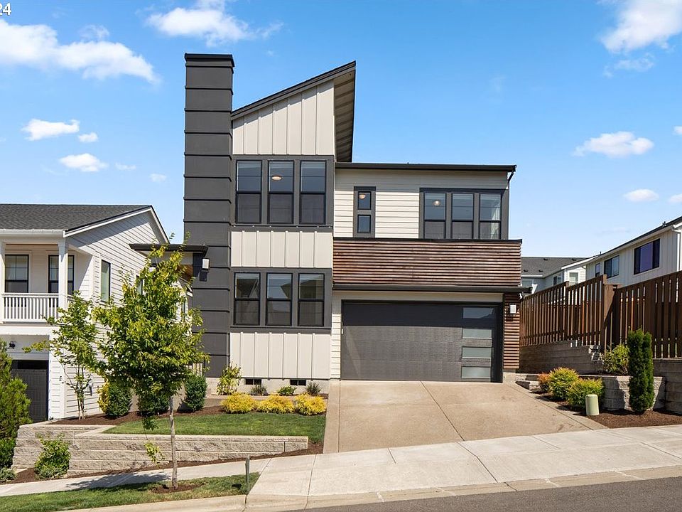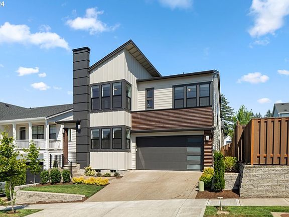 Stunning Toll Brothers Contemporary in sought after Thompson Woods. 3,233 Sq Ft, 4 bedrooms and 3.5 bathrooms. This great room floor plan includes 10-foot ceilings, floor-to-ceiling gas fireplace with custom tile, gourmet kitchen with oversized island, slab quartz countertops, tile backsplash, and a walk-in pantry. Engineered hardwood floors on the main. The main level bedroom suite with walk-in shower is perfect for multi-gen, guest suite, or home office. Upper-level features large primary suite with walk-in closet & spa like bath-- bonus room, laundry and 2 spacious bedrooms. Fully fenced level yard with patio. Solar panels and electric car charger. WA County. Close to parks, walking trails and excellent schools!