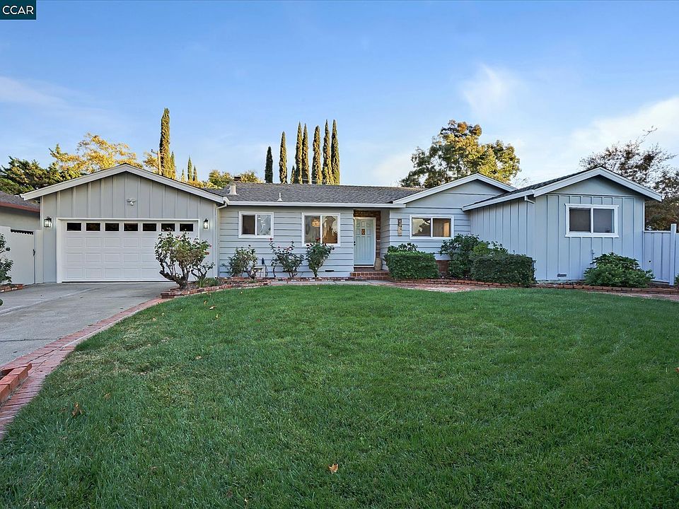 Incredible fully updated designer home on court location! Light, bright and airy with fresh interior and exterior paint, light vinyl flooring, new LED lighting and tons of windows allowing natural light to enter. Offering ample space for many different functionalities. Family/dining room with stone fireplace, living room, open eat-in kitchen includes breakfast bar for additional seating, dishwasher, gas range, panty, and island. Owners suite with walk-in closet, large shower, and vanity with double sinks. Beautiful backyard oasis with 2 patios, fruit trees, storage shed, splash pool, and mini house with electrical that can be used for office, kids play, or whatever extra space you need. **Possible ADU potential (drawings on request)! Near schools, parks, shopping, BART, and straight shot to freeway access.