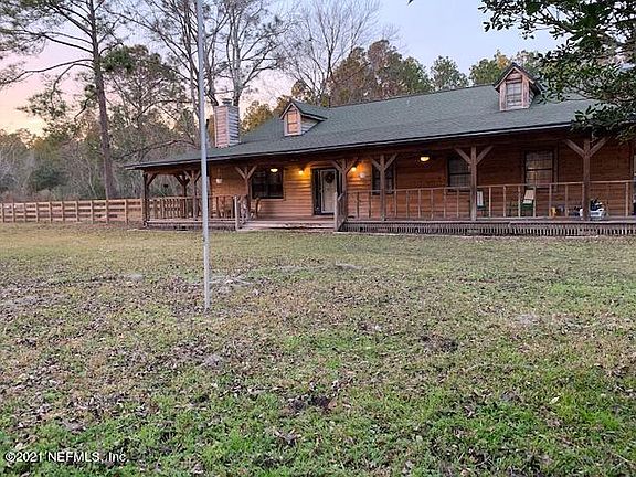 Must-see! This desirable 4-bedroom 2-bathroom home with a wraparound porch! The home is situated on just over 2 acres fenced, with a beautiful pond in the back. Also located in the back is a 30x50 insulated hurricane building. This home is also wired for RV hookup. Most captivating is the inside! The spacious kitchen features a large island with ample space for someone who loves to cook. Let's not leave out the double oven with a flat top electric range stove and a stainless-steel refrigerator. Don't miss out on the opportunity to cozy up by the fire with your built-in wood burning fireplace and with your second living space you are sure to entertain many guests! Many more alluring features to this home! Don't miss your chance, Schedule a showing today!