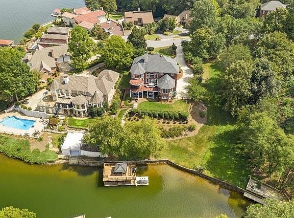 Exquisite lakefront home in Moore's Ferry on a cul-de-sac lot w/gorgeous lake views from almost every room in the house! Situated in a cove just off the main channel, you'll enjoy all lake activities from the 2-level dock w/boat lift. Impressive 2-story entry w/curved staircase & 2-story LR w/gas log FP & lots of windows overlooking the lake. Formal DR w/unique upholstered walls. Impressive kit w/large center island, granite & stone c'tops, professional grade appliances, spacious dining area. Sunroom w/access to large deck. Main level MBR suite w/deck access, gas log FP, 2 WICs & MBA w/claw foot soaking tub & large tile shower. Lower lvl den w/wet bar, FP & access to patio. Huge laundry rm, BR & full BA on lower lvl plus triple garage & workshop space. 2nd lvl offers a 2nd MBR suite currently used as a bonus rm, private en suite BA, plus 2 add'l BRs (one w/private deck & lake view), full BA & 2nd laundry area. Walk-up attic space; partial fenced back yard; irrigation system.