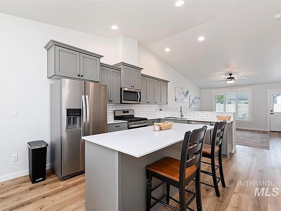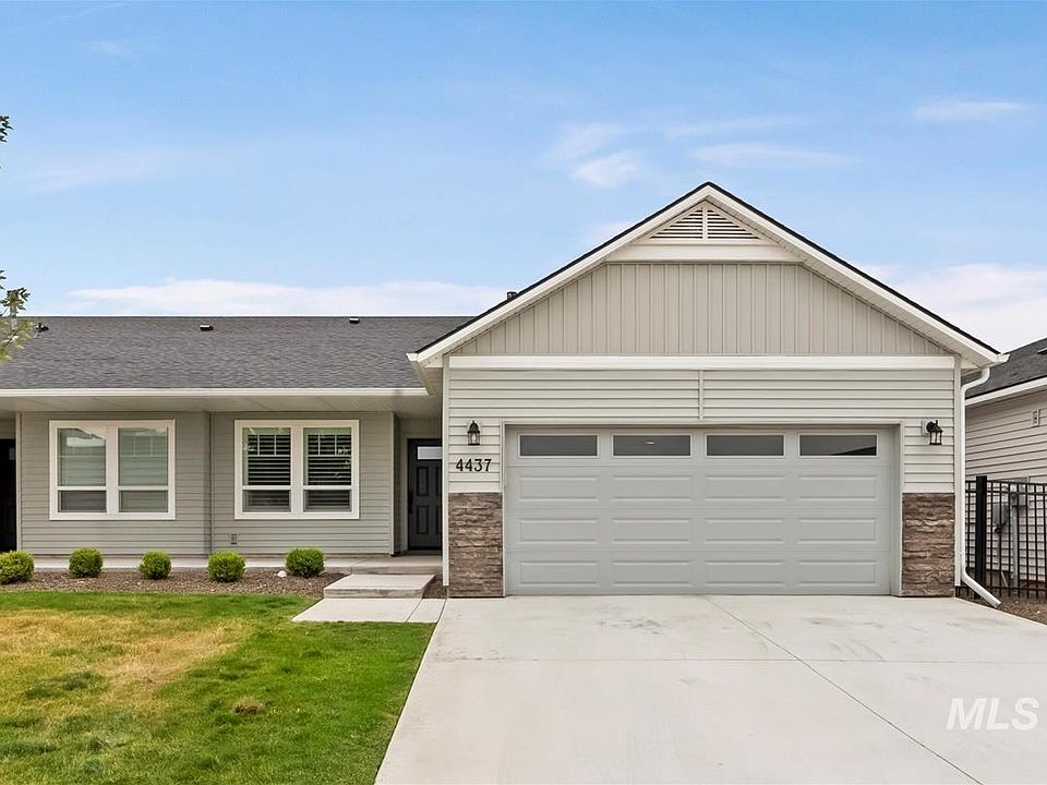 Move-in ready and designed for modern living, this single-level attached home by Blackrock Homes combines style, function, and low-maintenance convenience. Part of the sought-after Urban Series, the open concept layout features vaulted ceilings and expansive windows that fill the space with natural light. The kitchen offers generous stone counters, a large island, stainless steel appliances, gas range, and a spacious pantry with built-in shelving and a plug-in for added versatility. The primary suite is unexpectedly roomy, with a private bath that includes dual pocket doors for ease and privacy. Enjoy outdoor living on the partially covered patio and in the fully landscaped, fenced yard — with lawn care maintained by the HOA, no mowing required! Community amenities include a pool, parks, and walking paths, all in a prime Meridian location close to everything.